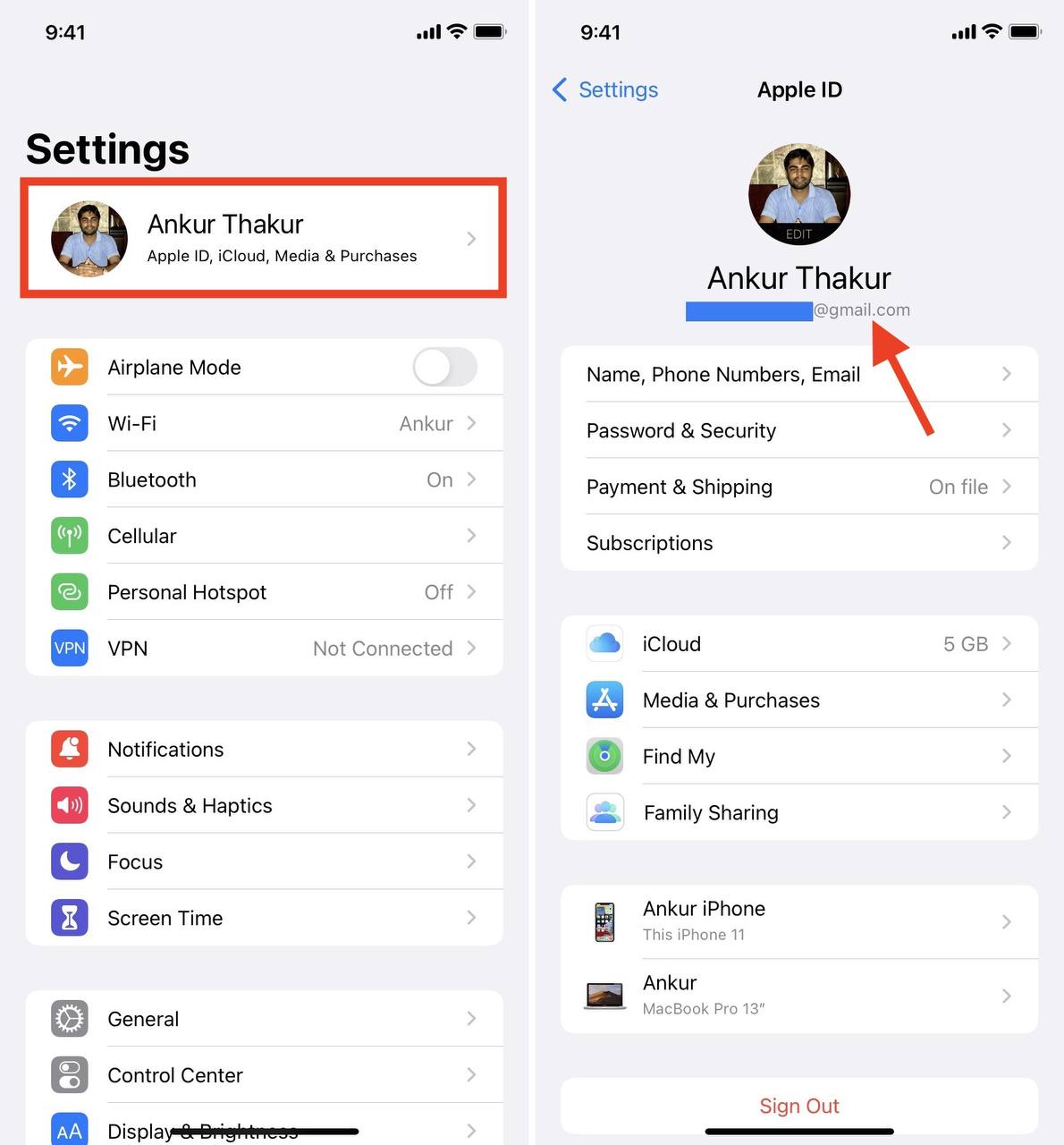 У розділі Apple ID ви побачите вашу електронну пошту